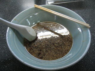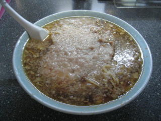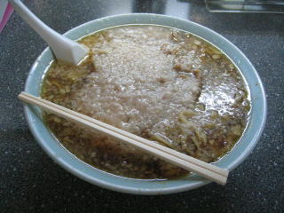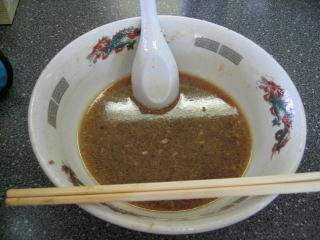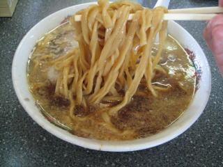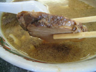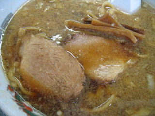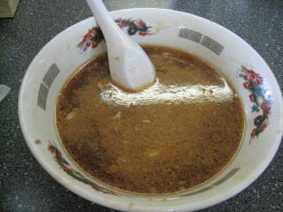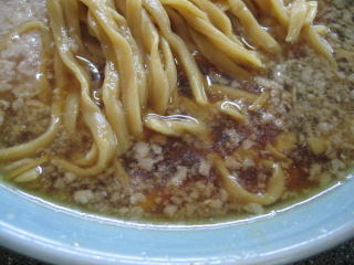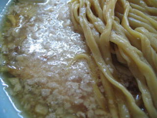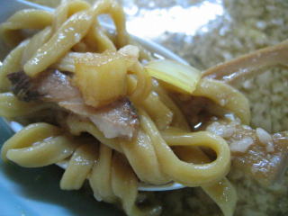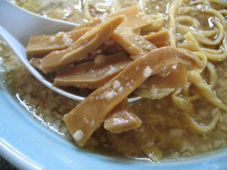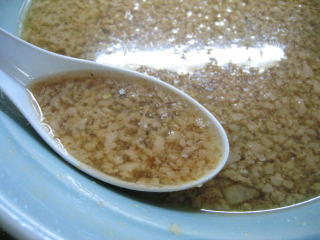 背油を除くと濃い目の醤油味スープなのが良く分かります。