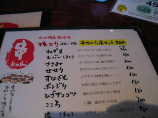 備長炭で焼く焼き鳥の種類は豊富、〆の麺類もあります。