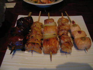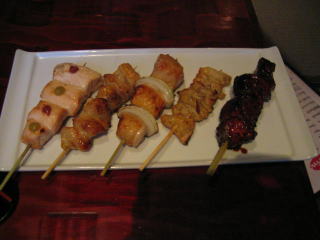 プリプリの太い焼き鳥が5本、レバーかな?ささみかな?ネギまかな?他は??どれも食べてもジューシー、バツグンに美味しいです。