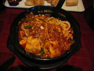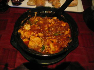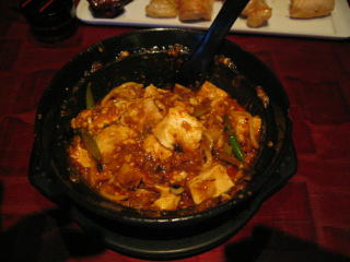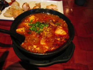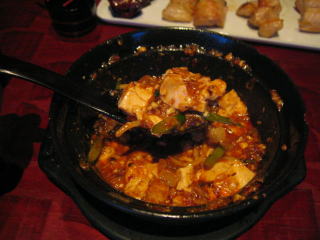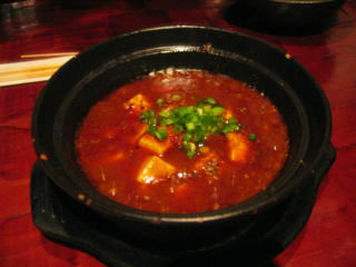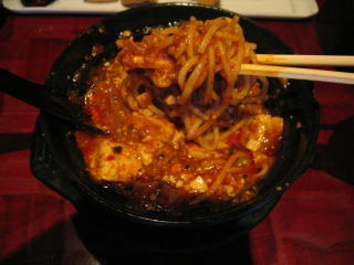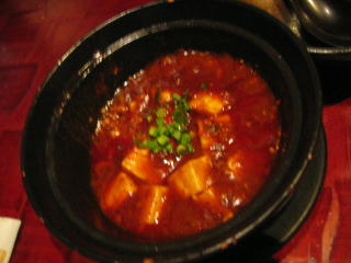 「激辛マーボ豆腐」です、グツグツと煮だっています。