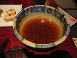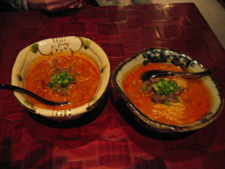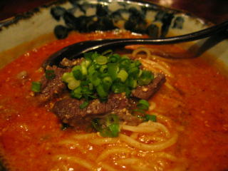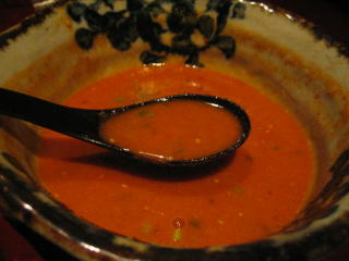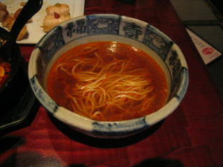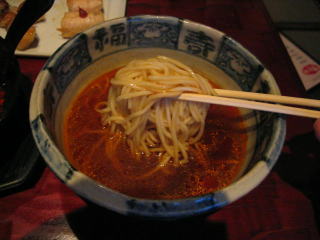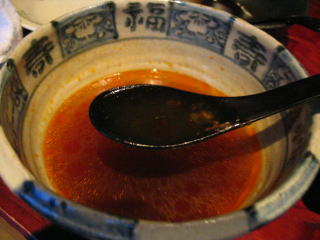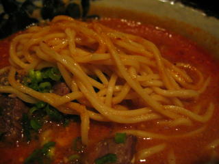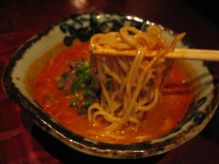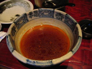 赤いスープの幕の下には、ゴマの効いたコクのある茶色くて美味しいスープが潜んでいます。