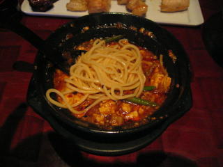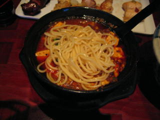 宴会途中でのおつまみを兼ねた麺です、伸びない麺がふさわしいと思います。