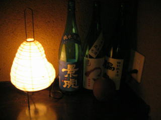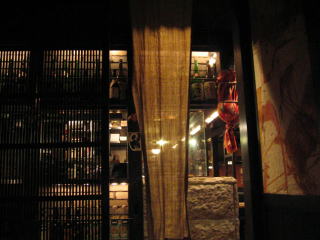 お店は白熱球の優しい照明、ちょっと暗めで落ち着いた店内、玄関正面は一部ガラス張りの厨房です。