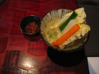 お通しは前回同様、生野菜盛り合わせです。