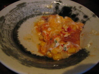 先に石焼オムレツがきました、卵がトロトロです。