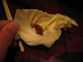 3回目です、麻婆餡には色々な美味しさを醸し出す食材がたくさん入っているはずです。