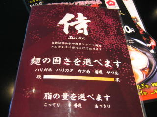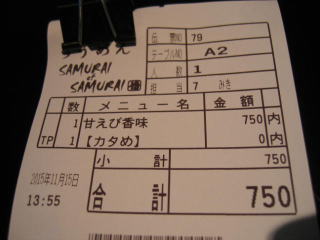 平成27年11月15日(日)の午後、金沢市の「らうめんの侍の侍」さんにお邪魔しました。