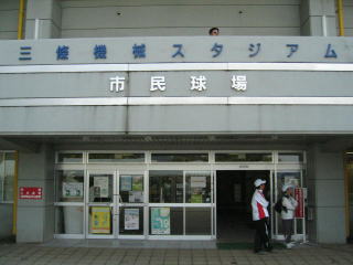 こちらが正面、「三条機会スタジアム 市民球場」です。