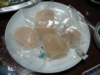 大きくて厚いホタテ、それも1個づつ包装されています。