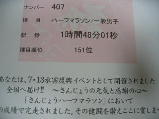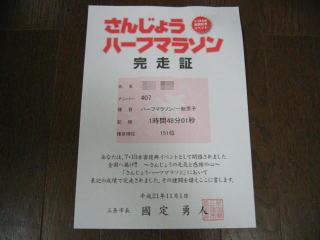平成21年11月1日 三条市の「さんじょうハーフマラソン」に参加しました。