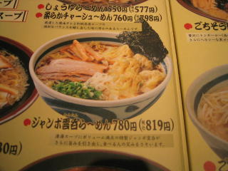 こちらは「ジャンボ雲呑らーめん」税込み819円です。