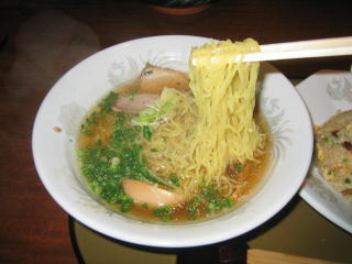 麺は中太麺、油の少な目のすっきりしょうゆラーメンです。
