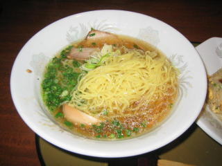 油の浮いた甘じょっぱいスープに、細麺の組み合わせ、量は少なめです。