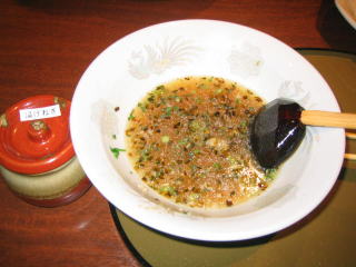 小さな壷には揚げねぎと揚げにんにくが入っています。
