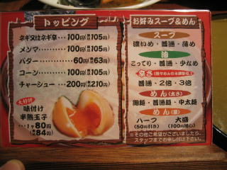 めん(量)には「ハーフ50引き」や「大盛100円増し」があります。