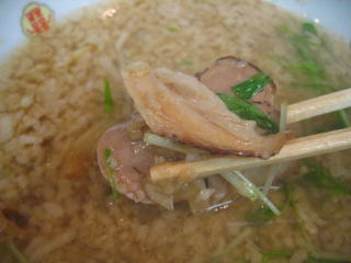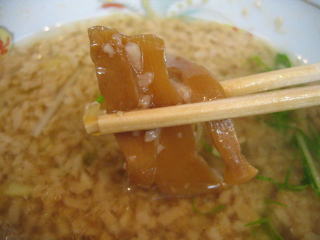 煮干がしっかり効いた濃い目の正油スープ、背油がしょっぱさをマイルドにしています。