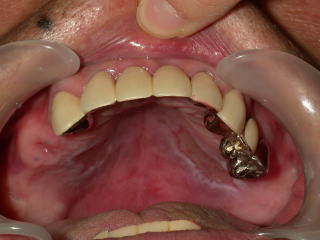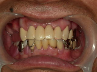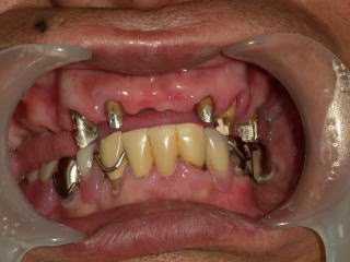 前歯2本と左上の奥歯の途中がありません。右の上は奥に全く歯がありませんので入れ歯になります。