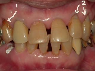 上の写真の2枚目の1が楔状欠損の大きいものです。詰めると2の様になります。