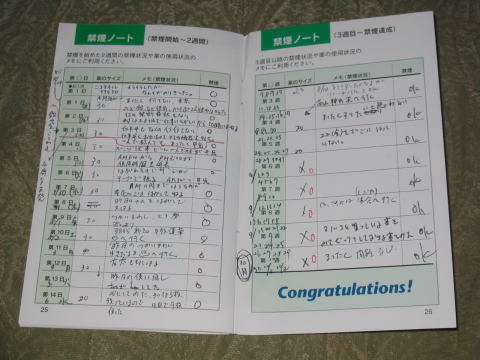 以下同社の「禁煙ガイドブック」に禁煙ノートというページがあり、姫ちゅが実際に禁煙にトライした時の記録がありますのでご参考までに載せておきます。