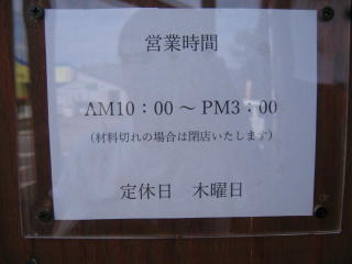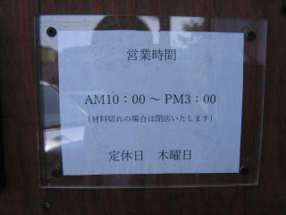 定休日が木曜日、個人的には痛いところです、そして営業時間は午前10時から午後3時まで、夜営業はないようです。