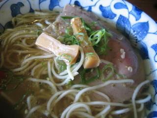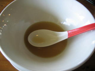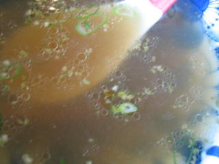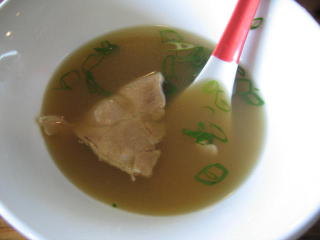濃い味の醤油豚骨スープ、ラードのような油が浮いています。
