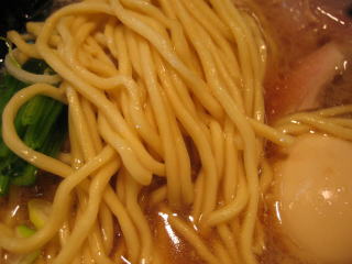 麺は中太麺、咬むとフカフカする感じの麺です。