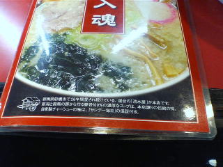 メニューの表紙には「群馬県前橋市で26年間愛され続けている、屋台の「清水屋」が本店です。」と書いてあります。