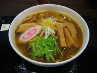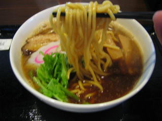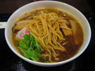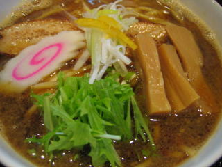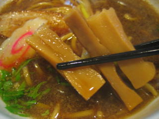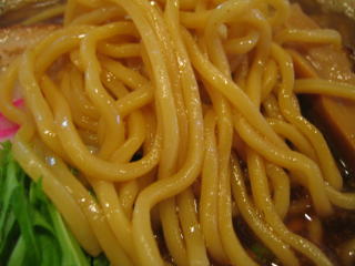 スープは濃い目の醤油味で、多少の背油がかかっています。