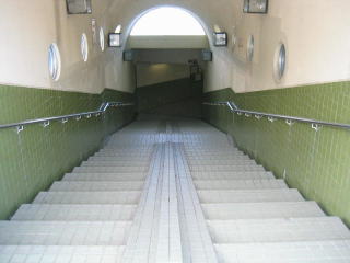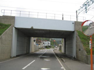 信越本線のガード下をくぐって鯨地下道、海側の出入口は波の絵が書いてありますがごく普通の形。