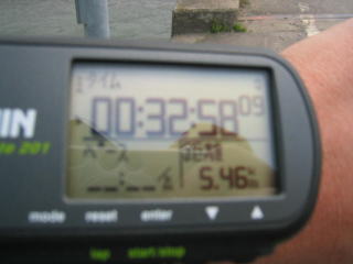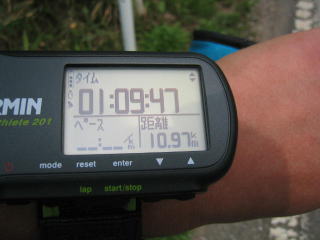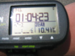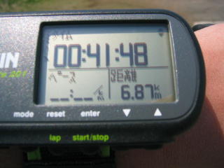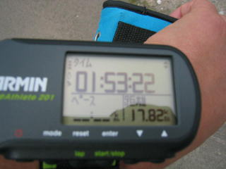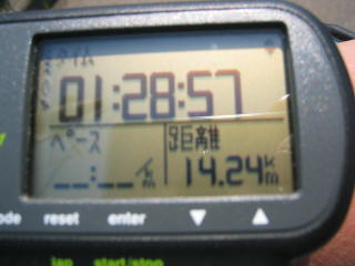 行く時途中でスイッチを入れ忘れましたので距離で1.24キロ、7分28秒を足さないといけません。