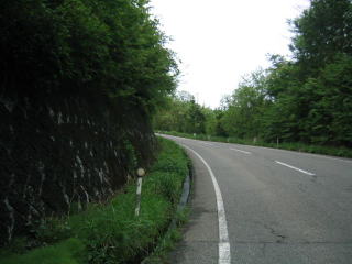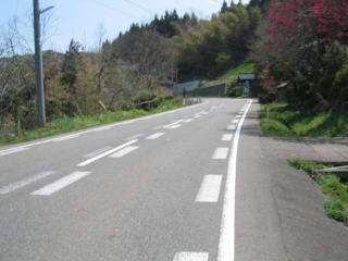 県道鯨波宮川線に出て左折、1.7kmほどの急坂が始まります。