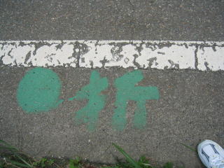 おっ!道路に「折」の文字、きっとここが折り返し点!?(たぶん違う)