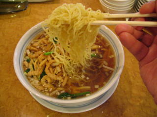 N報社のラーメン本に書いてあるメニュー「ザーサイと豚肉入りスープそば」800円を頼みました。