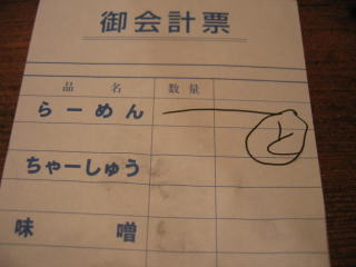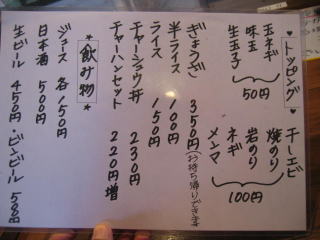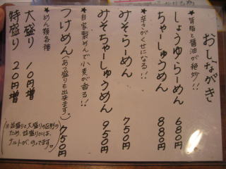 「おしながき」はシンプル、基本は「しょうゆ」と「みそ」それに「つけめん」です。