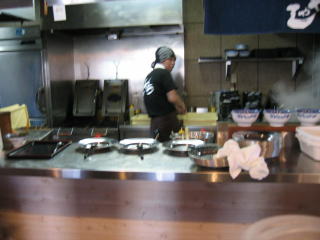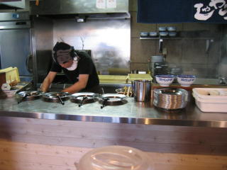 こちらの男性が、忙しく厨房を一人で賄っています、非常に手際が良いように見えます。