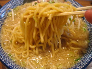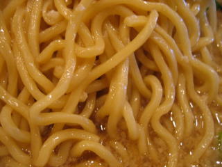 硬い茹で具合ですが、咬むとフカフカする感じの麺です。