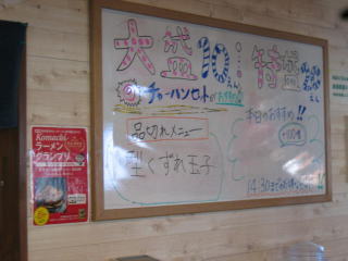 小さくて見えませんが、厨房の上には「背脂の少な目・抜きは当店が出したい味が出せなくなるためお断りさせて頂いております」と書いてあります。