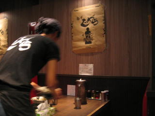 駅構内のお店のせいか、スペース的には少々狭め、照明は暗めです。