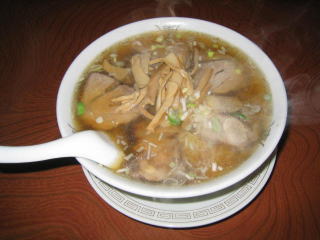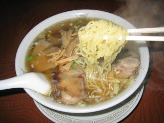 麺は縮れ細麺、スープはすっきりしょうゆ味です。
