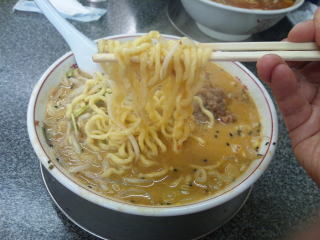縮れて打ちふと麺に濃いみそスープが良く絡みます。