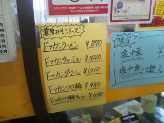 今日は、「エビミソ担々メン」920円大盛り無料と「ドッカンラーメン」大盛り無料870円も券売機では買えず、店員さんに直接注文です。