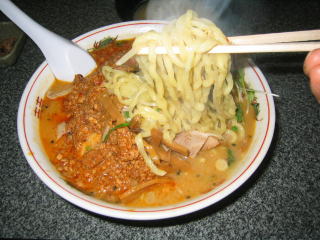 エビの香りがとても香ばしい、限定「エビミソ担々メン」920円大盛りです。