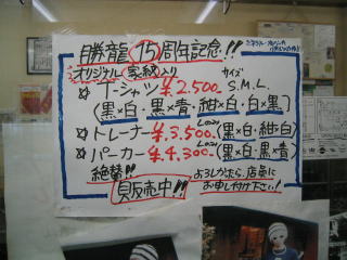 ほうほう、「勝龍15周年記念!!オリジナル家紋入りTシャツ」も販売中です。
