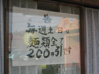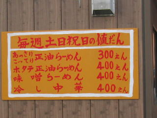 平成18年だというのに土、日、祝のみですが正油らーめんが300円、ビックリです。