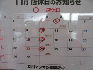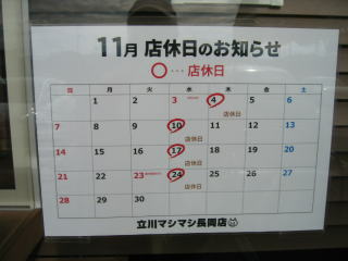 もう12月ですが、まだ「11月の店休日」が張ってありました、年末年始の定休日が決まっていないのかもしれません。