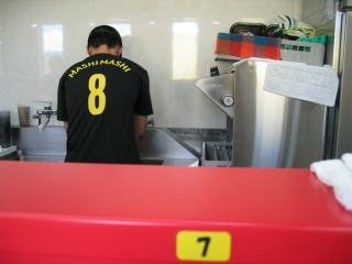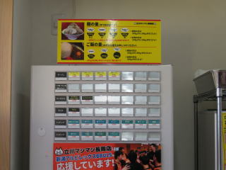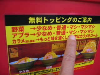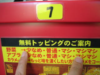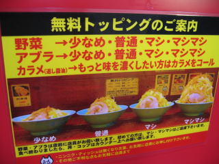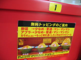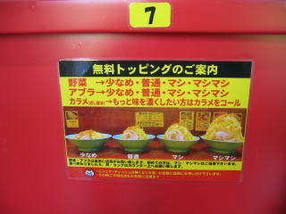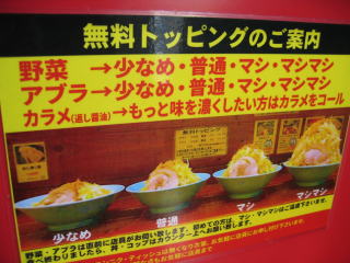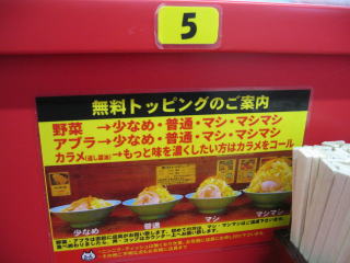 店内で食券を渡し、ラーメンができるのを待ちます、その間に「無料トッピング」決めます。