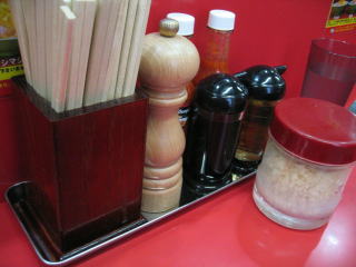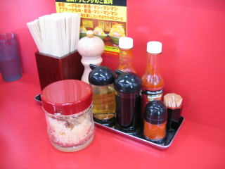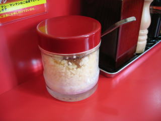 ニンニクはテーブル上にありますので、ラーメンが来た後、お好みで入れます。
