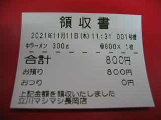 令和3年11月11日(木) 長岡市の新店「立川マシマシ」長岡店さんにお邪魔しました。