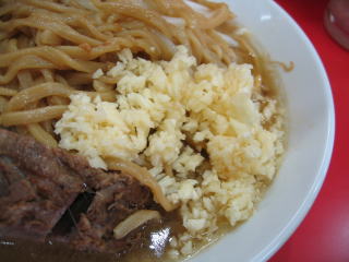 アブラマシマシにしているのに、なぜかチャーシューのアブラの塊は残しました。