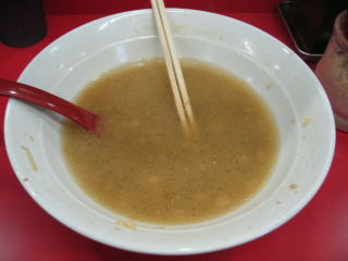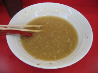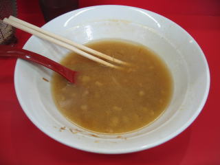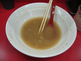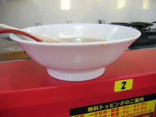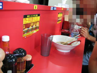 「ラーメン二郎」と同様に、どんぶりとコップをカウンター上へ上げて、テーブルを布巾で拭いて、お店を後にします。